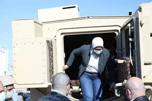14. أثناء استقلالها مدرعة وتجولها #شمال_سيناء لمتابعة الوضع على الأرض والتحقق من توافر بروتوكولات العلاج واللقاح للحالات الأولى بأن تأخذه