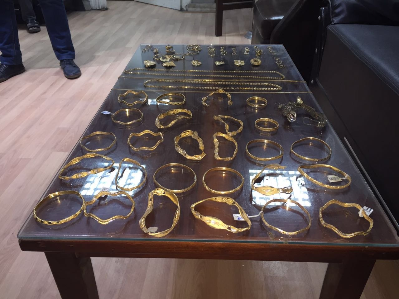 مباحث مركز طلخا من مصطفي عبد الوهاب مصطفى 48 سنة فلاح ومقيم كفر دميرة التابعة لمركز طلخا بالعثور على كيس بلاستك بداخله كمية من المششغولات الذهبية اثناء حفرة بأرضه الزراعية زمام القرية وتبين أنه يزن 600 جرام. وباجراء التحريات تم ربط الواقعه بالمحضر 11001 / 2011 جنح مركز شرطة طلخا بتاريخ 11/9/2011 بشأن إصابة / هانى ز أ ، صاحب محل مشغولات ذهبية بقرية ” دميرة ” دائرة المركز ، بجروح متفرقه بأنحاء الجسم
