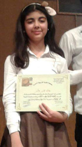 مهيب اسكيف – عندما كان عمرها 11عاماً -الرائدة على مستوى القطر في كتابة