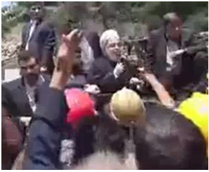 در اين بازديد درحاليكه روحاني قصد سخنراني داشت معدنچيان فرياد ميزدند « عزا عزاست امروز روز عزاست امروز» معدچيان به روحاني اجازه سخنراني ندادند و یک معدنچی روی سقف خودرو رفته كه خواسته معدنچيان را به رئيس جمهور شياد بگويد ولي محافظان روحاني مانع او شده و پلاكارد را از دست كشيده واو را از ماشين پائين آوردند، معدنچيان ديگر با لگد و كلاخود به ماشين روحاني ميكوبيدند و النهايه روحاني مجبور به فرار از منطقه شد درحاليكه معدنچيان در اعتراض به بي عدالتي كه نسبت به آنها در رژيم آخوندي شده شعار ميدادند.