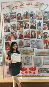 الفنانة الرسامة / لينا طالبة بالمرحلة الإبتدائية ظهرت موهبتها منذ نعومة أظافرها وهى فى الرابعة من عمرها .. أبهرت مدرسيها بموهبتها الفنية الرائعة … قوة الإبداع لديها تتأتى من قوة حضوره ..