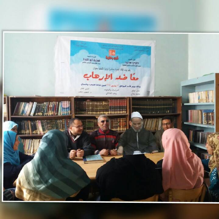 حاضر فيها د.ربيع حمدى أستاذ الفقه والتفسير وعضو لجنه الفتوى بمحافظة المنيا الذى تناول فيها جوانب شتى عن الارهاب من النواحى الدينيه ،والسياسية، والأخلاقية موضحا المبادئ الأساسية لمحاربة الإرهاب والتطرف، وهى نشر الوعي الدينى الصحيح ونشر ثقافة الولاء والانتماء للوطن والعمل على بناءه بالفكر البناءكما شدد دكتور (ربيع )على عدم اختلاط أبنائنا باصحاب الفكر الهدام وان نسعى للارتقاء بوطننا كما تطرق الى بعض الأحاديث والآيات القرأنيه التى تحض على نهضة المجتمع والارتقاء به