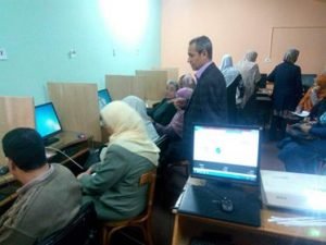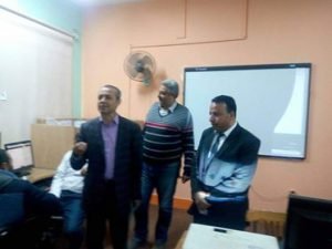 ايماء الى تعليمات معالى الوزير باستئناف تدريبات الترقى على بنك المعرفه وبناء على تعليمات الاستاذ الدكتور صلاح غنيم مدير الاكاديميه .والدكتور حسن جاويش مدير الادارة العامه للترقى بمتابعه سير التدريبات .تابع اليوم الاول للتدريب الدكتور حسن جاويش قاعات التدريب بمركز