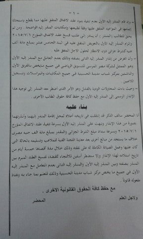 بالإضافه إلى عدم تنفيذ البند العشرون وهو صيانة الملعب وتسليمه لمركز الشباب كما كان .