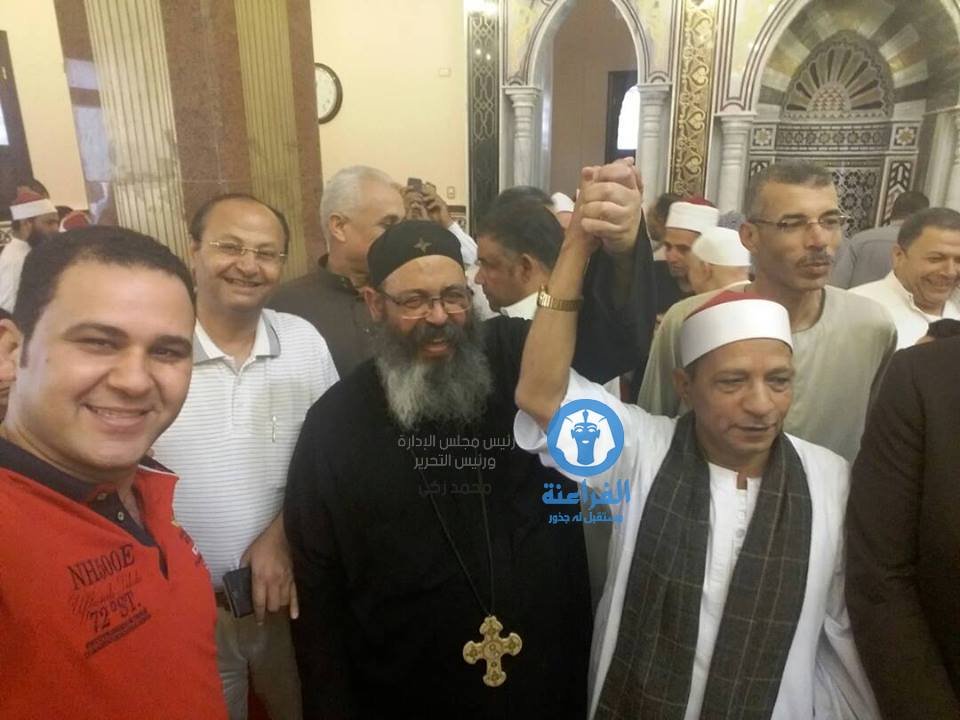 الأقباط،وإثبات أن فرح المصريين واحد وأن الإخوة ليست أخوة دين فقط ،بل هى إخوه وطن واحد فقد ارسلت الكنيسة المصرية ممثلين عنها لحضور إفتتاح المسجد،وكان فى استقابلهم عائلة ابوشادى يتقدمهم المهندس محمد مختار شادى مجدد المسجد، وفى حضور مجلس ادارة جمعية أبوشادى برئاسة،اللواء محمد ابوشادى والدكتور محمد أبوشادى،والدكتور عبد المنعم أبوشادى،والدكتور صلاح شادى،والمهندس محمد عبدالعال ابوشادى،والمتحدث الإعلامى للعائلة عصام ابوشادى،حيث نقل القناة السادسة صلاة الجمعة ووقائع الاحتفال بهذا الصرح الاسلامى.