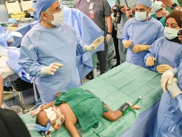 تمكّن الفريق الطبي والجراحي السعودي في عمليات فصل التوائم السيامية – بحمدالله – من فصل التوأم السيامي النيجيري “حسنة وحسينة”، وذلك بمستشفى الملك عبدالله التخصصي للأطفال بمدينة الملك عبدالعزيز الطبية للحرس الوطني بالرياض، بعد عملية جراحية معقدة استغرقت 16 ساعة ونصف نفذت على 9 مراحل، وشارك فيها 39 من الاستشاريين والمختصين والفنيين من أقسام التخدير وجراحة الأطفال وجراحة المسالك البولية وجراحة العظام وجراحة التجميل وجراحة الأعصاب للأطفال، بالإضافة إلى الكوادر التمريضية والفنية.وأوضح معالي المستشار بالديوان الملكي المشرف العام على مركز الملك سلمان للإغاثة والأعمال الإنسانية رئيس الفريق الطبي والجراحي الدكتور عبدالله بن عبدالعزيز الربيعة أن هذه العملية تأتي إنفاذا للتوجيهات الكريمة من لدن القيادة الرشيدة – أيدها الله – و تعد رقم 60 في سلسلة عمليات البرنامج السعودي لفصل التوائم الملتصقة.وأضاف معاليه أن البرنامج السعودي استطاع خلال 34 عاماً أن يعتني بـ 135 توأما سياميا من 25 دولة من الدول الشقيقة والصديقة، مؤكداً دور المملكة الريادي في العمل الإنساني بشكل عام والطبي بشكل خاص، مقدماً لزملائه أعضاء الفريق الطبي والجراحي الشكر الجزيل على جهودهم الكبيرة وعطائهم المستمر، مشيرًا إلى أن هذا الإنجاز الطبي يترجم الشعور الإنساني النبيل للقيادة الحكيمة وحرصها على تقديم الخير للإنسان أينما كان، كما يجسد التفوق الطبي السعودي؛ الذي يأتي انسجاما مع أهداف رؤية المملكة 2030 لتطوير القطاع الصحي بالمملكة، ورفع جودته وكفاءته.