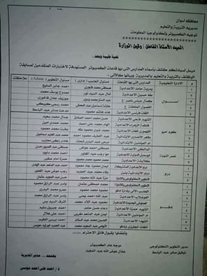 ضرورة التزام المتقدم بالمواعيد المحددة للاختبار ، وان يكون الاختبار في الإدارة التي قدم بها ملفه ، أما الإدارات التعليمية فسوف تعلن غدا أسماء ومقرات المدارس التي بها قاعات اختبار.