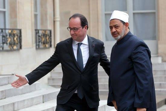 استقبل الرئيس الفرنسى فرانسوا هولاند اليوم، الثلاثاء بقصر الاليزيه فضيلة الإمام الأكبر د.” أحمد الطيب” شيخ الأزهر الشريف والوفد المرافق له الذى يزور فرنسا حاليا.
