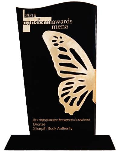 تأكيداً لتميزها وتعزيزاً لسجلها الحافل بالإنجازات، فازت هيئة الشارقة للكتاب مؤخراً بالجائزة البرونزية في حفل توزيع جوائز “ترانسفورم” الشرق الأوسط وشمال أفريقيا لعام 2016، عن فئة أفضل تطوير استراتيجي أو إبداعي لعلامة تجارية جديدة. ويأتي هذا الفوز بعد مرور أسبوعين على