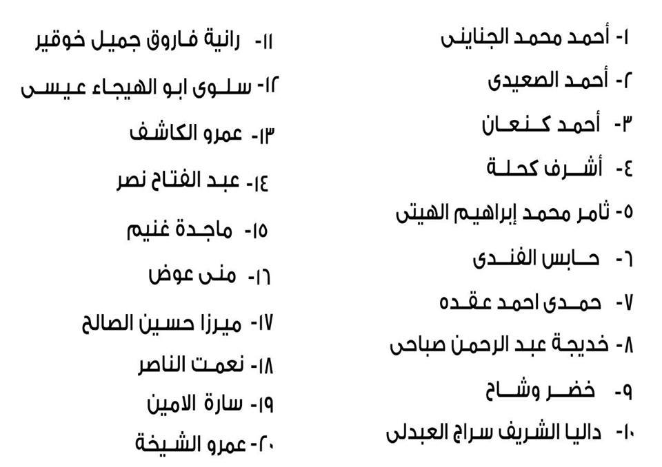 ومن الأردن تشارك خديجة عبد الرحمن صباحي مدربة فن “الديكوباج” ، ومن العراق تامر الهيتي كما يشار من مصر الفنان التشكيلي عمرو الكاشف وحمدي عقدة وأحمد الجناينيى