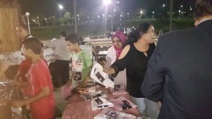 حديقة الفسطاط واشادت فريال بالمجهودات الثقافية والخيرية للصالون وبالانشطة الرائعة التي تضمنها الحفل هذا وقد قدمت عفيفي ملابس العيد هدية منها باسم المبادرة للأطفال الايتام ودعت الجميع للمشاركة في رسم البسمة وادخال الفرحة والسرور على قلوبهم
