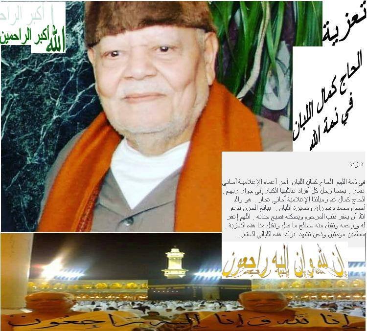 في ذمة اللهم الحاج كمال اللبان أخر أعمام الإعلامية أماني عمار . بعدما رحل كل أفراد عائلتها الكبار إلى جوار ربهم . الحاج كمال عم زميلتنا الإعلامية أماني عمار . هو والد أحمد ومحمد
