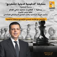 محمد زكى تنظم محافظة الدقهلية ” البطولة الدولية للشطرنج” برعاية النائب محمود سامي الامام رئيس الهيئة البرلمانية للحزب المصرى الديمقراطي الاجتماعي بمجلس الشيوخ ونائب رئيس الحزب للشؤون السياسية والتشريعية. (more…)
