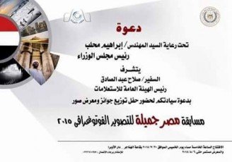 كتب عمرو الكاشف اكد السفير صلاح الدين عبد الصادق رئيس الهيئة العامة للإستعلامات إن افتتاح معرض مسابقة مصر جميلة للفن الفوتوغرافى سيتم تحت رعاية رئيس مجلس الوزراء بمسرح الهناجر بدار الاوربرا غدا الخميس 30 يوليو 2015 (more…)
