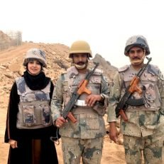 ظهرت ميسون أبوبكر، الإعلامية والكاتبة السعودية، وهي ترتدي الزي العسكري” الخوذة العسكرية، والدرع الواقي من الرصاص”، خلال زيارة لها على الحد الجنوبي في المملكة العربية السعودية، رفقة الجنود السعوديين، في مؤازرة للأبطال جيش المملكة الباسل المرابط على...