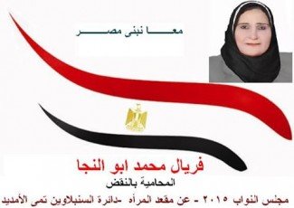 قالت فريال محمد أبو النجا المرشحه لإنتخابات مجلس النواب 2015 عن دائرة السنبلاوين .. تمى الأمديد بالدقهلية إن المرأة المصرية لم تأخذ حقها على مدى العهود السابقة وأنها دائمًا ما تكون مهمشة على الرغم من أنه لا صوت يعلو على صوت الست المصرية، حيث أنها تتصدر المشهد فى المواقف...